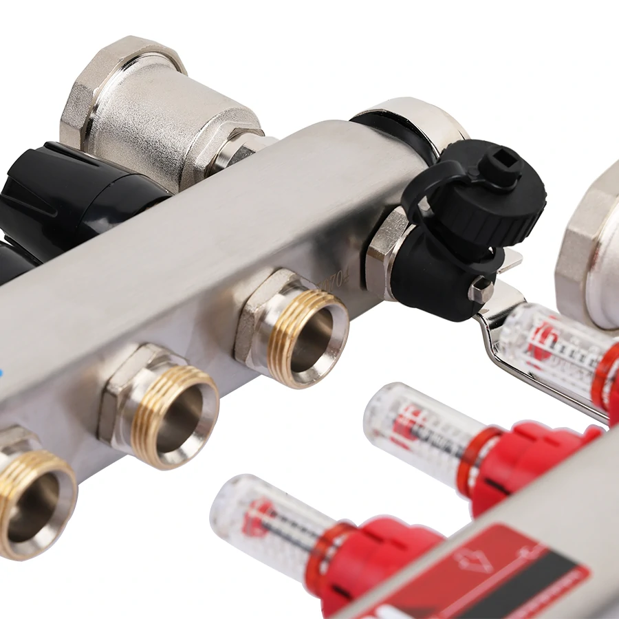 Коллекторный блок служит для распределения потоков по контурам теплого пола, где в качестве теплоносителя используется вода либо незамерзающие растворы гликоля с максимальной рабочей температурой 70 °C, рабочим давлением до 6 бар