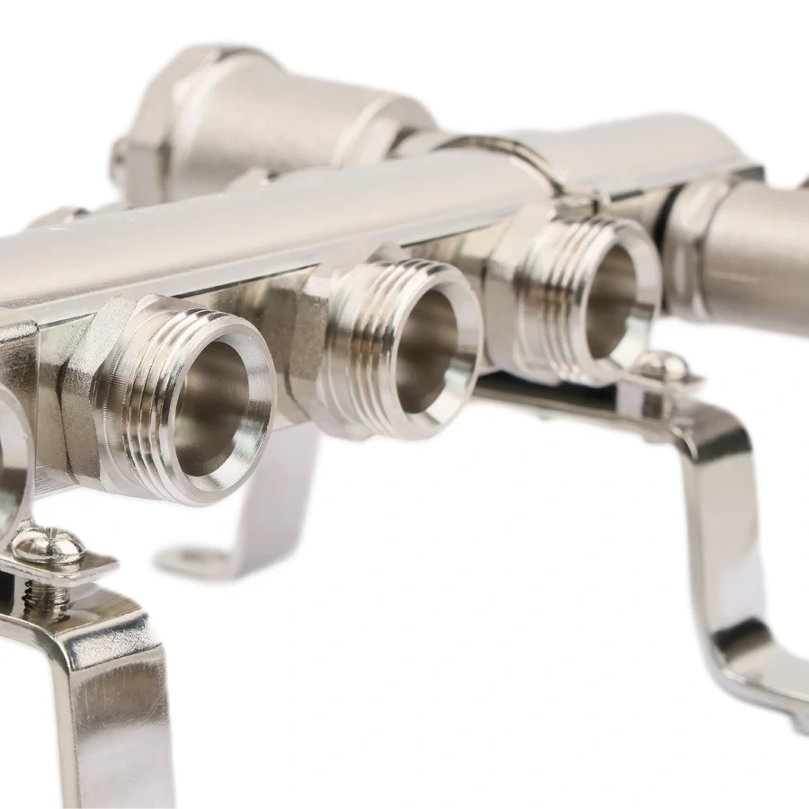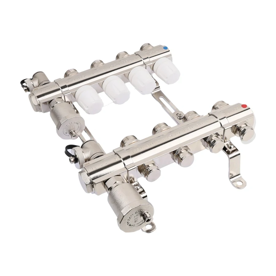 Коллекторный блок служит для распределения потоков по контурам теплого пола, радиаторного отопления, прочих климатических систем, где в качестве теплоносителя используется вода либо незамерзающие растворы гликоля с максимальной рабочей температурой 90 °C, рабочим давлением до 10 бар